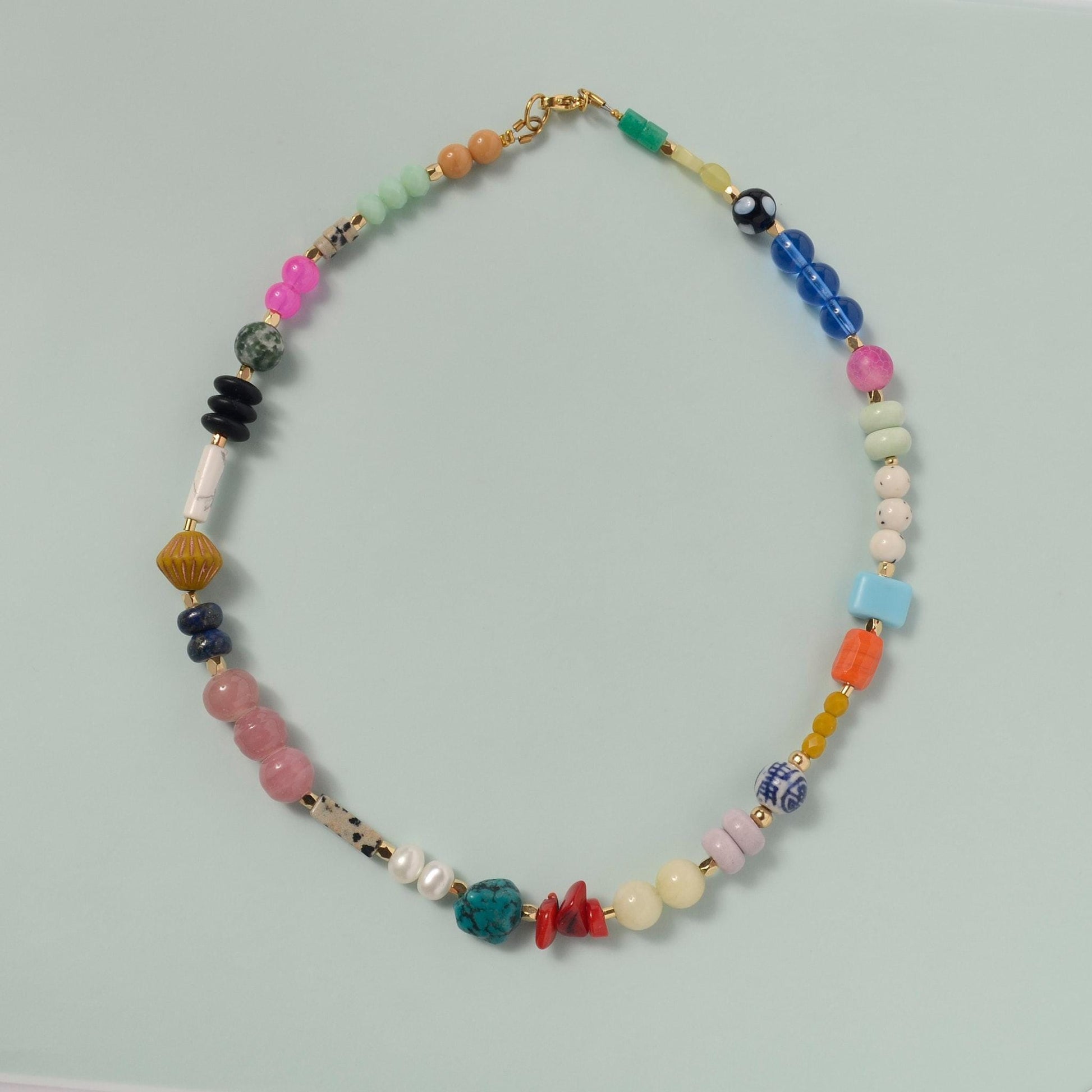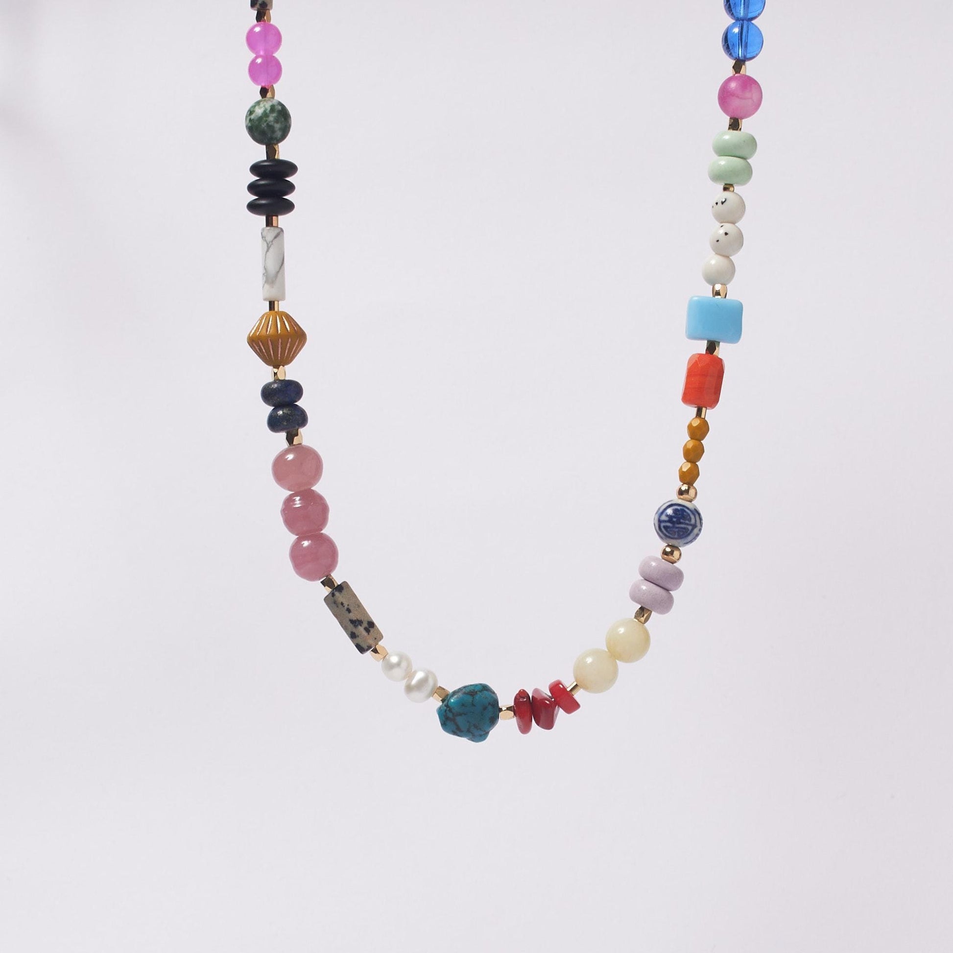 Safety: Remove your necklace before intense exercise or swimming in chlorinated pools to protect the natural stones and glass finish.