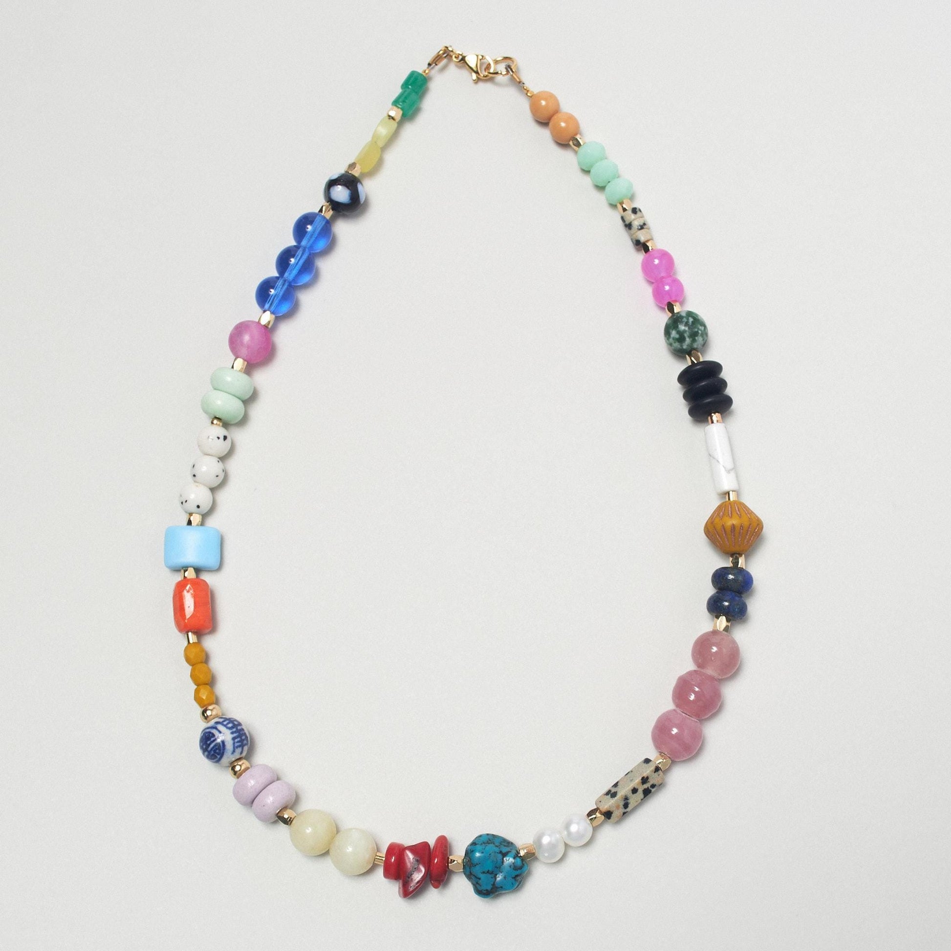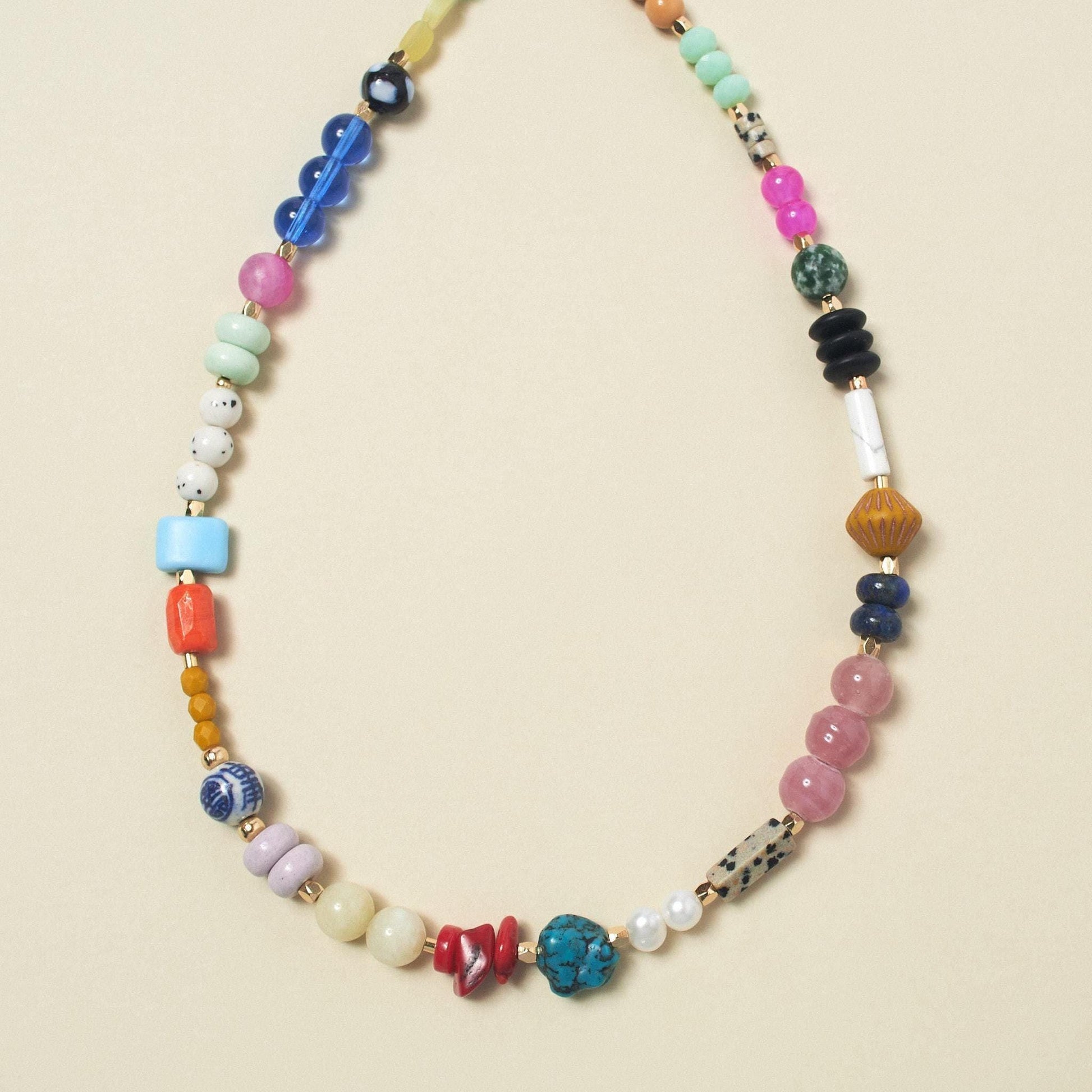 Materials: Vibrant chunky Czech glass beads and curated natural precious stones.